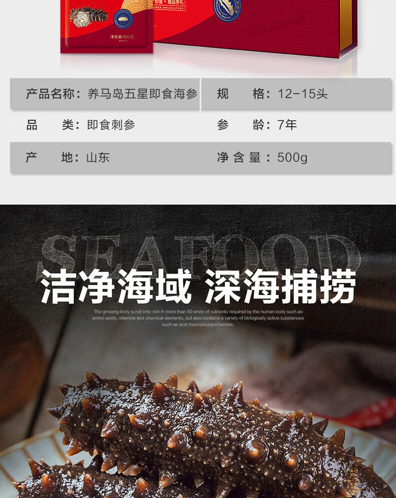 尊岛养马岛五星即食海参 500g